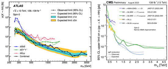 - Aad, G. et al. [ATLAS Collaboration] Combination of searches for resonant Higgs boson pair production using pp collisions at = 13 TeV with the ATLAS detector. Phys. Rev. Lett. 2024, 132, 231801. [Google Scholar] [CrossRef] [PubMed]