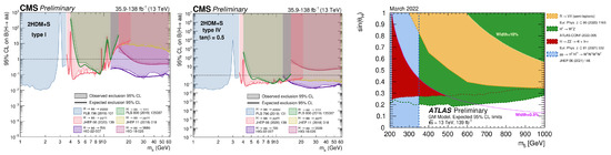 - CMS Collaboration. Summary of 2HDM+S searches at 13 TeV (Run 2). Available online: https://twiki.cern.ch/twiki/bin/view/CMSPublic/Summary2HDMSRun2 (accessed on 30 May 2024).