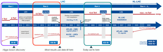 - Longer Term LHC Schedule. Available online: https://lhc-commissioning.web.cern.ch/schedule/LHC-long-term.htm (accessed on 30 May 2024).