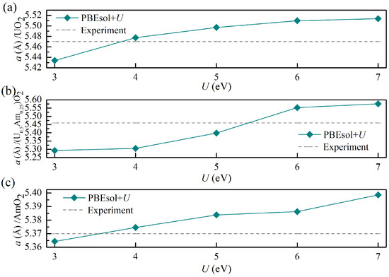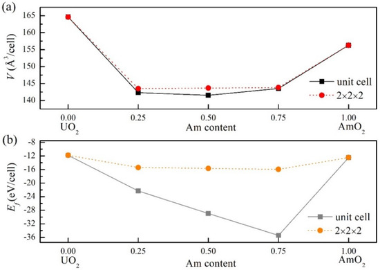 3.1. The Bulk Properties for (U, Am)O2 Using the Supercell (96-Atom) Defect Models