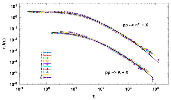 - Parvan, A.S.; Teryaev, O.V.; Cleymans, J. Systematic comparison of Tsallis statistics for charged pions produced in pp collisions. Eur. Phys. J. A 2017, 53, 102. [Google Scholar] [CrossRef]