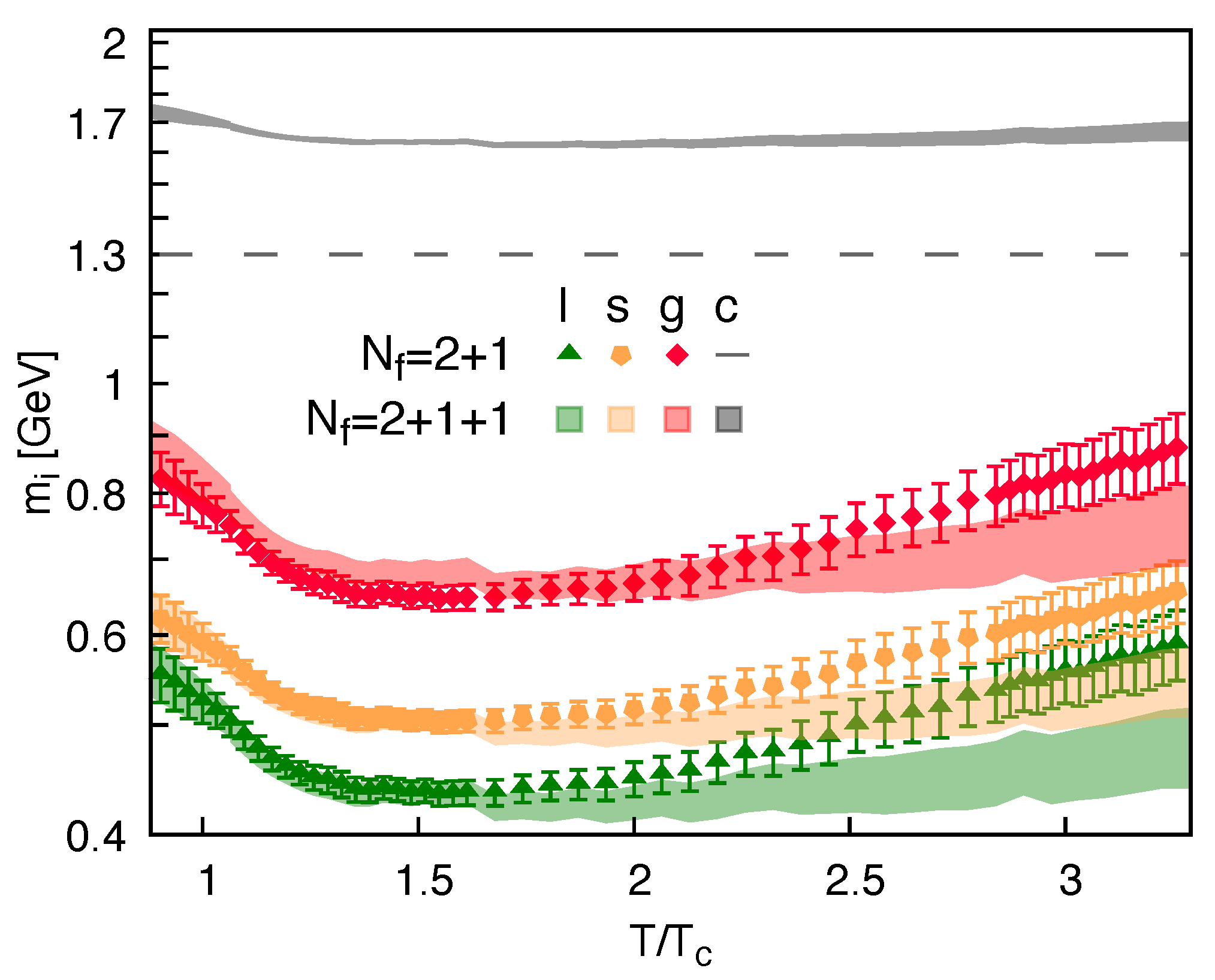 - Sambataro, M.L.; Greco, V.; Parisi, G.; Plumari, S. Quasi particle model vs lattice QCD thermodynamics: Extension to Nf = 2 + 1 + 1 flavors and momentum dependent quark masses. Eur. Phys. J. C 2024, 84, 881. [Google Scholar] [CrossRef]