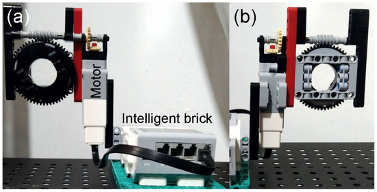 Front (a) and rear (b) views of the rotary mount made with LEGO EV3 components.