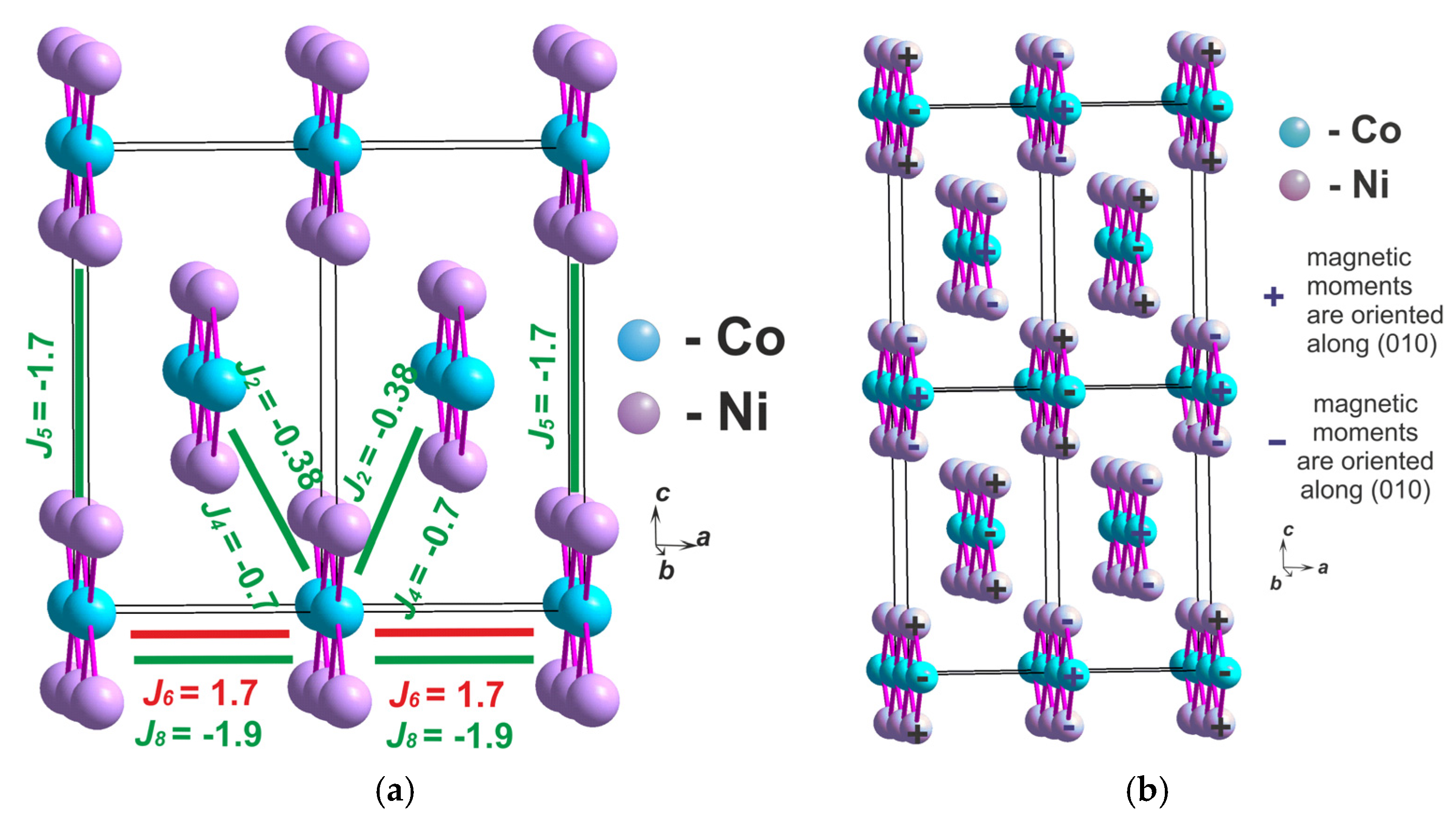 | Co1 | Co2 | Ni3 | Ni4 | Ni5 | Ni6 | Contribution of Exchange Interactions Exchange Part of Energy | |