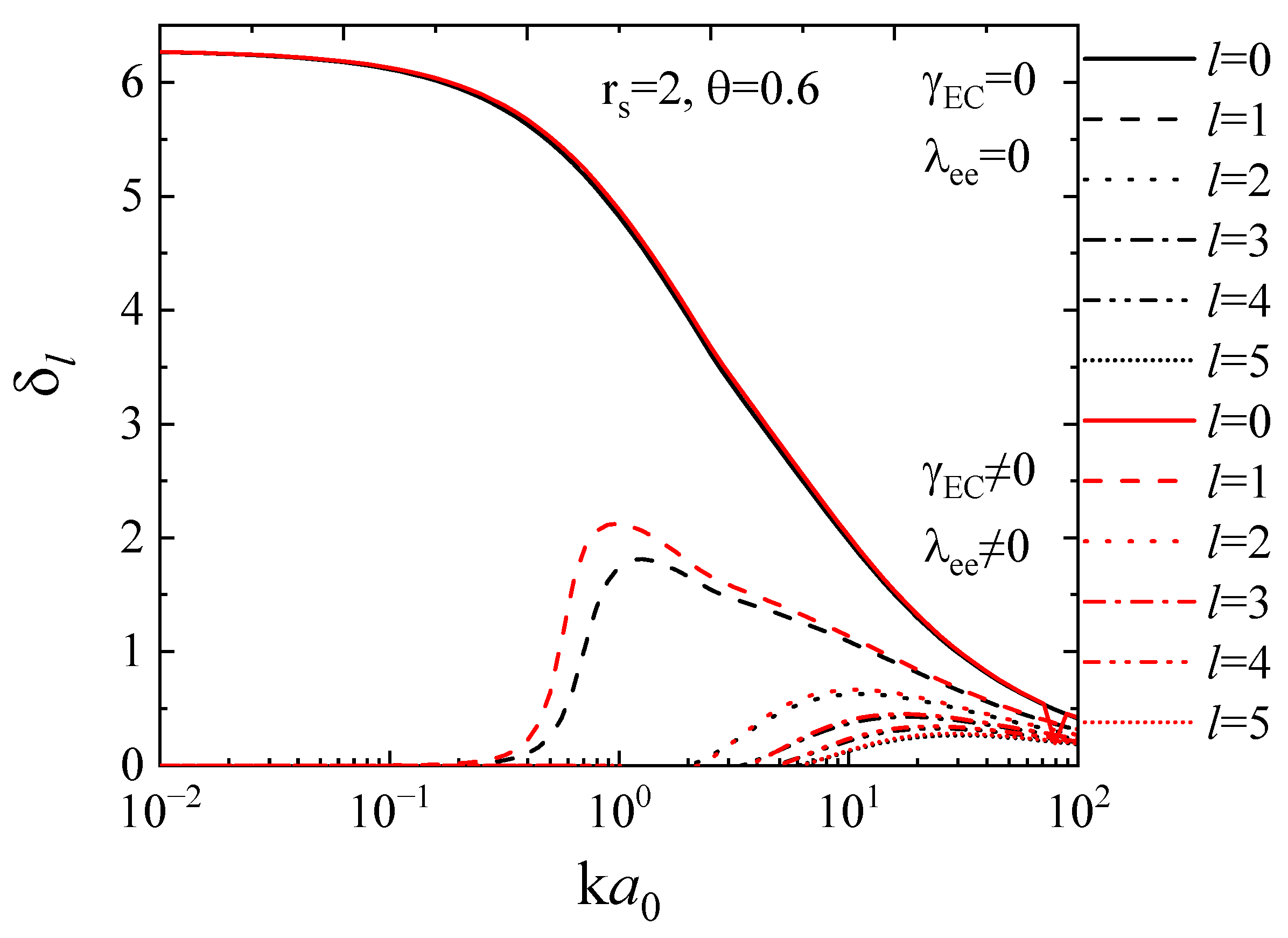 Section 4 reports the results, including comparisons with data from other studies. Phase shifts, differential cross-sections, and total scattering cross-sections are calculated, providing a comprehensive analysis of the scattering process under quantum plasma conditions. The comparison with experimental data and alternative theoretical approaches demonstrates the reliability of the proposed method and contributes to a deeper understanding of quantum plasma effects in electron–atom interactions. Conclusions are given in