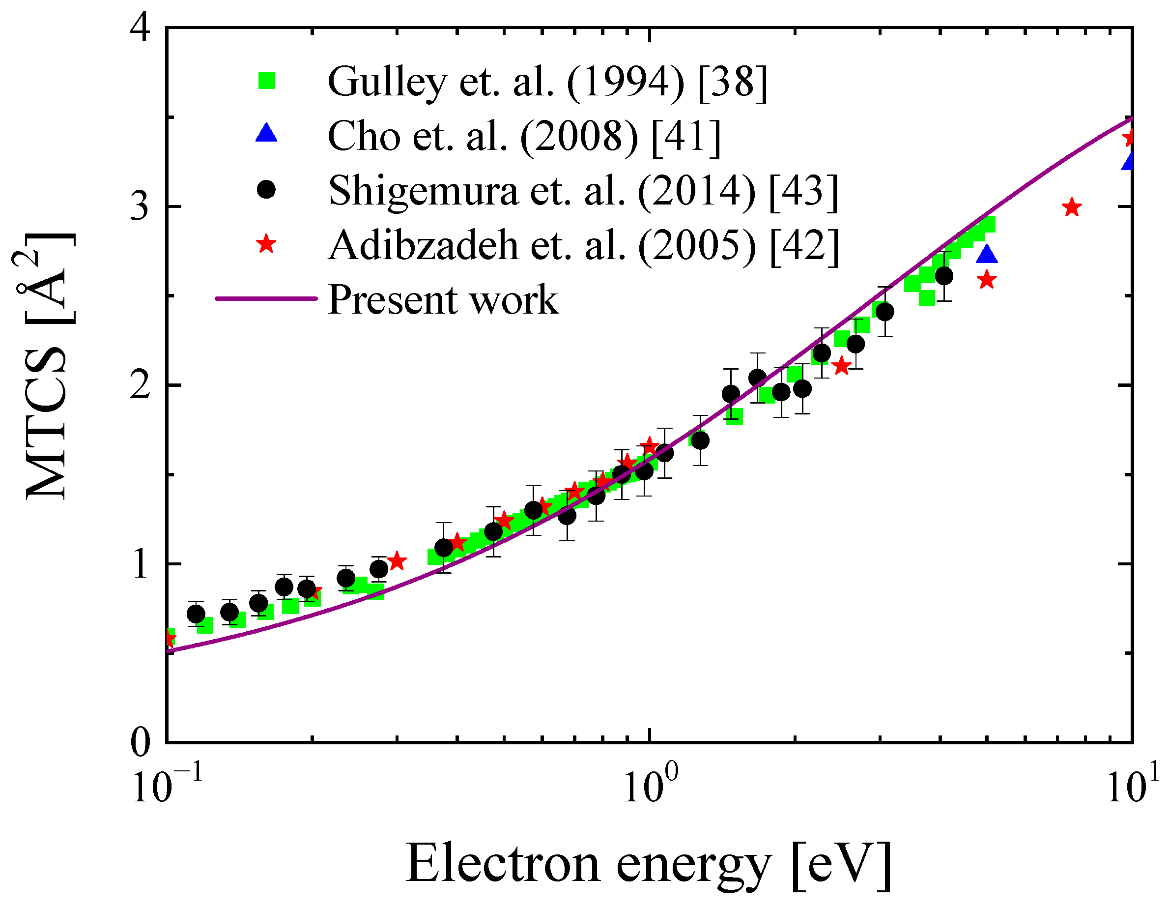 Figure 6 shows the MTCSs calculated for electron scattering on the neon atom compared with the results of other studies. Here, we also used data obtained for electron scattering on isolated atoms (