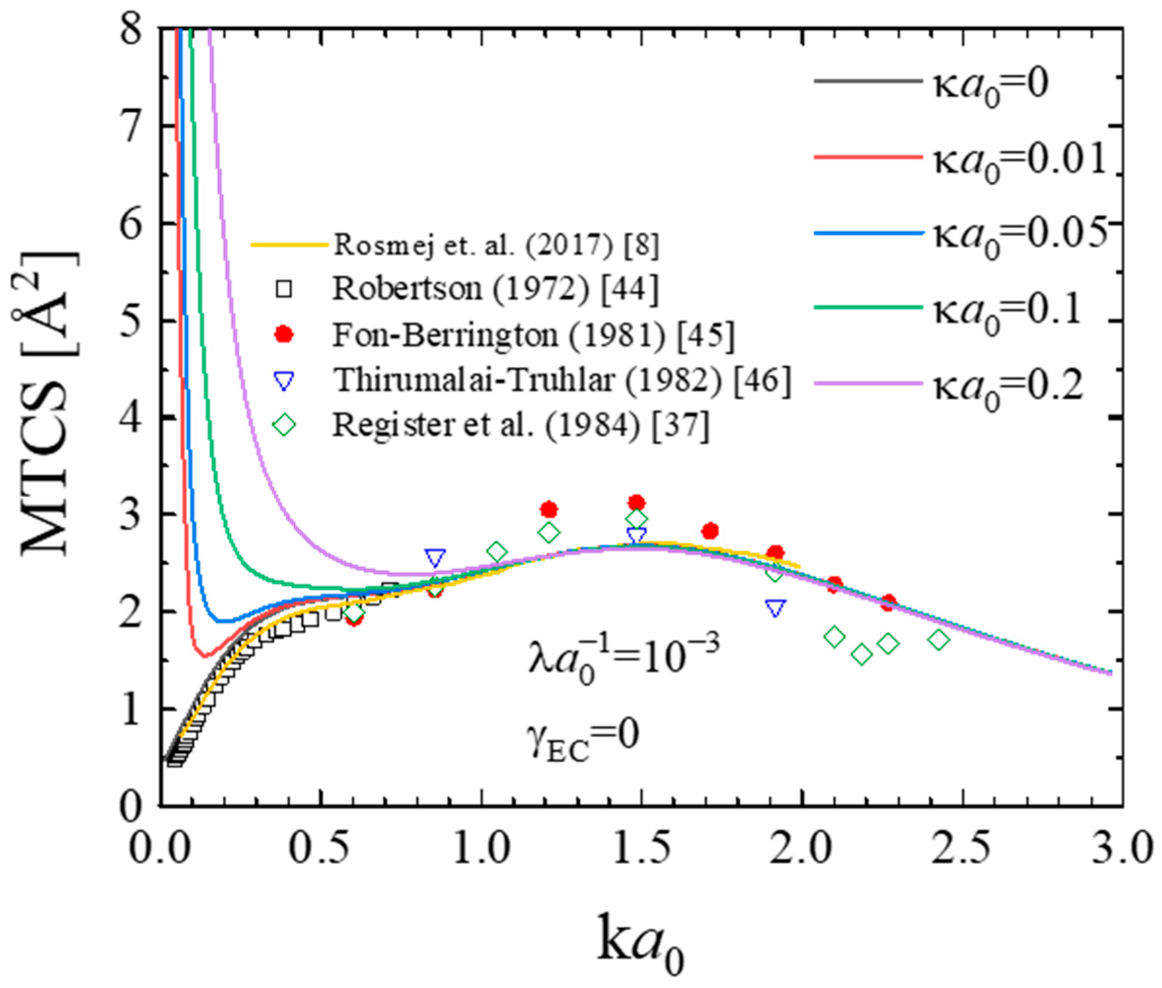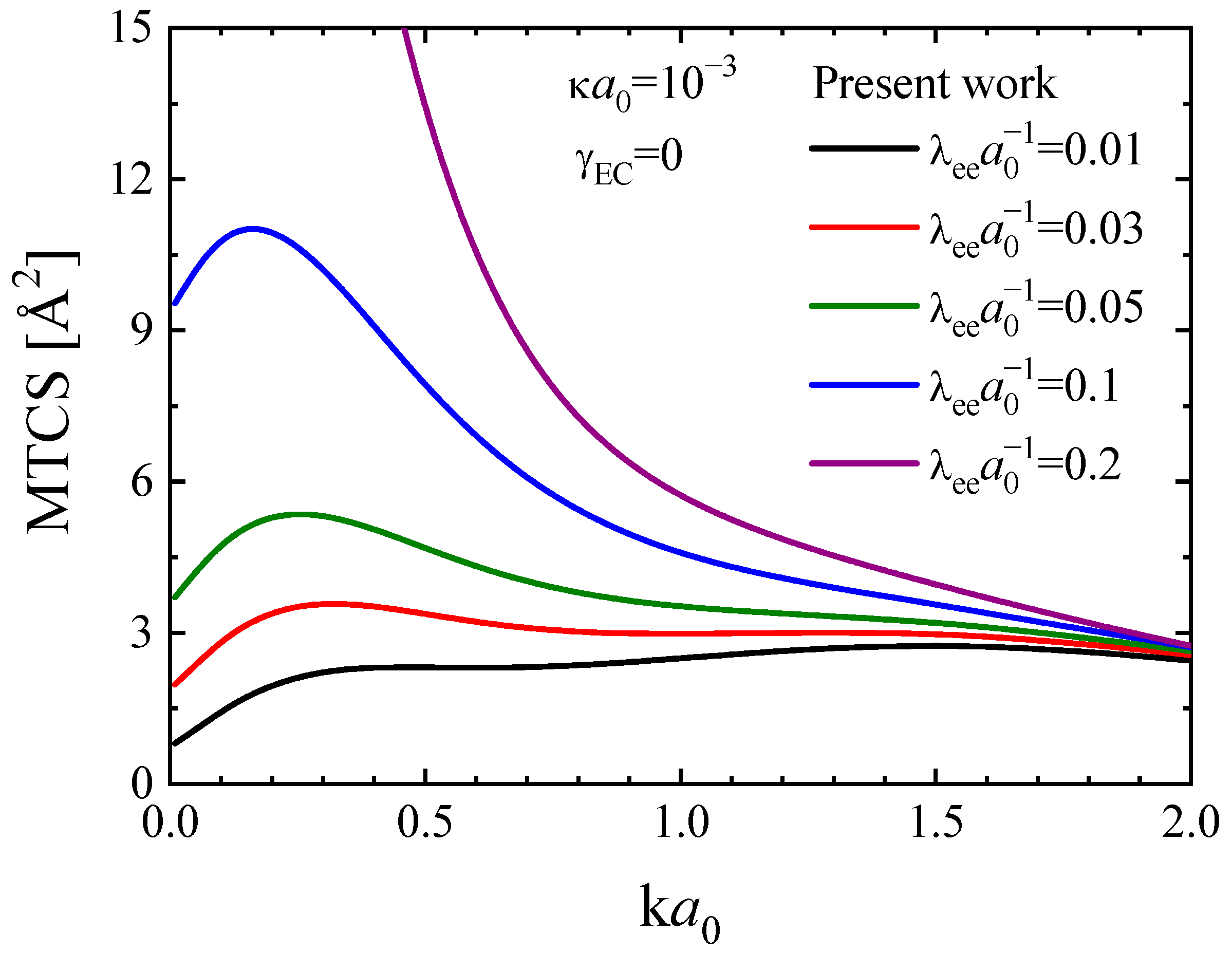 Figure 7 presents the MTCS calculated for for electron scattering on the neon atom at different values of the dimensionless screening parameter