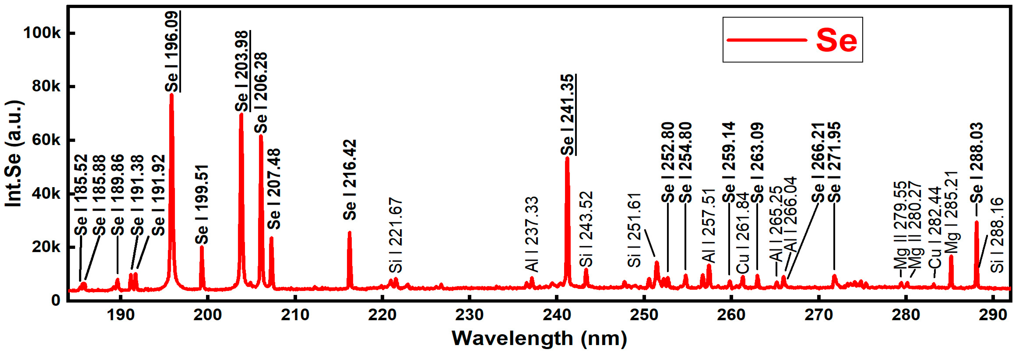 3.1. Selenium LIBS Spectrum