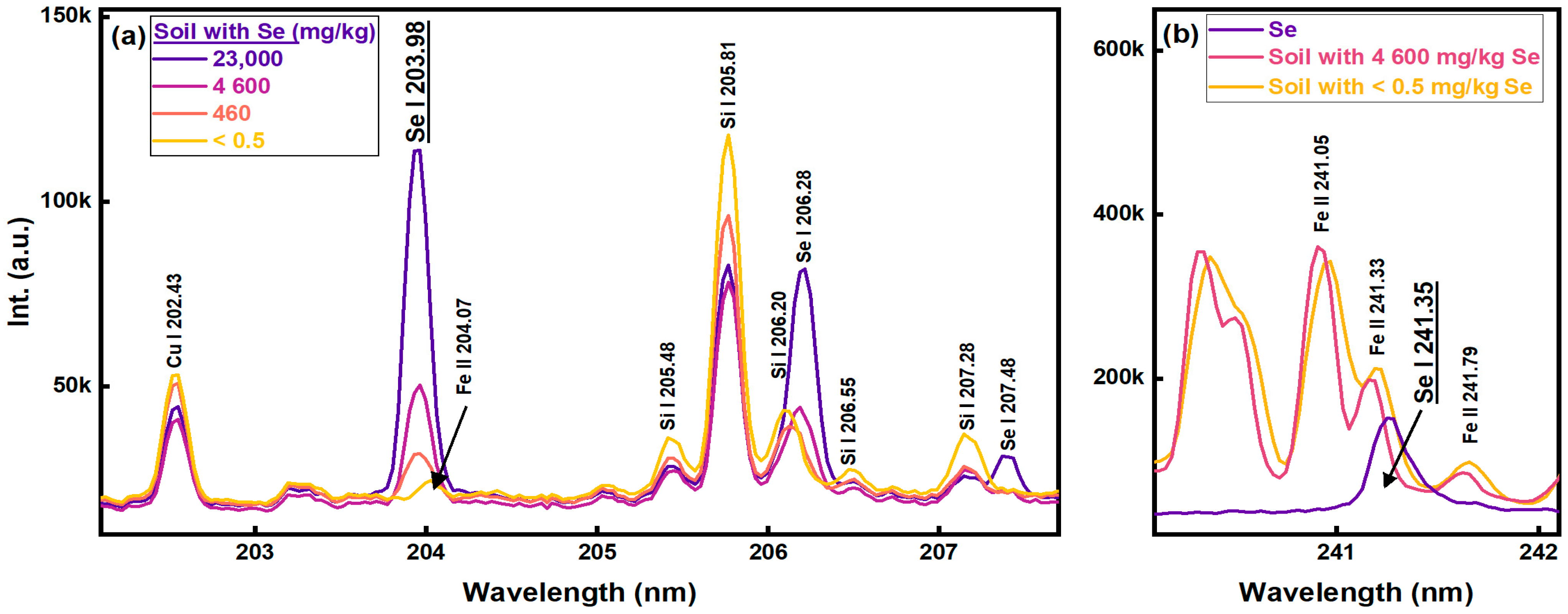 - Rogachevskaya, A. Se in Soil by LIBS Calibration; Elsevier Inc. (Mendeley Data): Amsterdam, The Netherlands, 2025. [Google Scholar] [CrossRef]