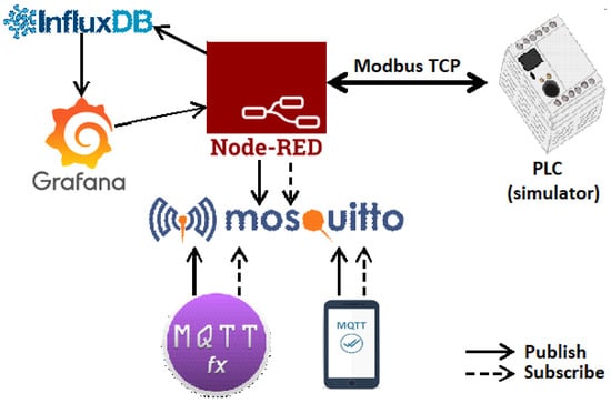 The Node-RED approach followed through in this paper constitutes an actual solution for the shortcomings of current SCADA systems utilized in the industry. As indicated in Section 3, Node-RED allows for platform-independent SCADA implementation, as it can be integrated on multiple devices, hence providing an efficient monitoring medium that can be accessed remotely. By interconnecting software nodes of the network through the aforementioned lightweight protocol, MQTT, it allows for fast data transmissions and real-time operations that assure low bandwidth usage and power consumption. The communication that occurs between the emulated hardware components and the previously specified IoT platform is executed in a rapid manner, data integrity being granted by the Modbus TCP/IP transfer protocol.