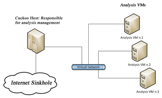 Cuckoo is a sandbox environment that enables the analysis of a malware or normal executable files. Analysis information is presented in a high-level way that anyone can understand [29]. API(Application Programme Interface) call analysis will isolate exactly how a malware will interact with an OS and what functions within an OS it draws on. Besides the standard Cuckoo configuration, versions that contain more anti “anti-sandbox” features are available, such as Cuckoo-modified. The basic setup of Cuckoo sandbox is displayed in Figure 1. The host uses a virtual network that is isolated, often through a host-only interface, which will allow the Cuckoo host to execute malware samples safely without giving access to the host itself. Figure 2 demonstrates the systems involved in a Cuckoo sandbox analysis task.