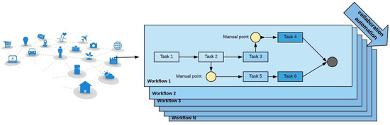 - Seiger, R.; Assmann, U.; Huber, S. A Case Study for Workflow-Based Automation in the Internet of Things. In Proceedings of the 2018 IEEE International Conference on Software Architecture Companion (ICSA-C), Seattle, WA, USA, 30 April–4 May 2018; pp. 11–18. [Google Scholar] [CrossRef]