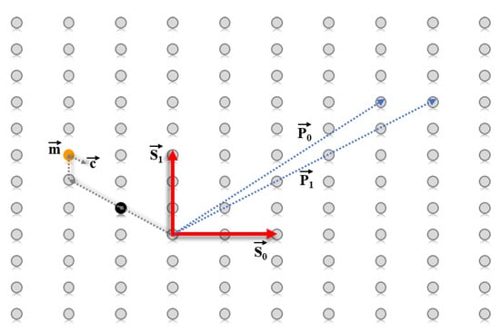 Example for lattice-based encryption (LBC) in a 2-dimensional structure: The secret, symmetrical base is []; the public, asymmetrical base is []. The sender utilizes [] to outline the message to a lattice point m and adds an error vector to obtain the resultant point []. The point [] is adjacent to the [] than to any of the other lattice points. Therefore, the receiver can utilize the well formed secret-base [] to easily retrieve [] (dotted vectors); this is a hard computation for an attacker who only has the scrambled base []. For a quantum-secure scheme, the n-dimension of the lattice must be much higher than 2 as in this example (source: http://publica.fraunhofer.de/dokumente/N-481797.html (accessed on 3 February 2021)).