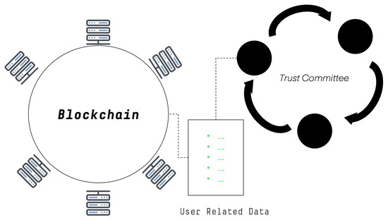 The trust committee takes user-related data from the Blockchain and commits an estimation of the user’s trust value.
