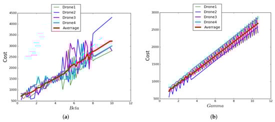 It is shown in Figure 6 that the distribution of the UAVs’ speeds have an impact on paths generation. For example Figure 6a shows that Drone1, Drone2,