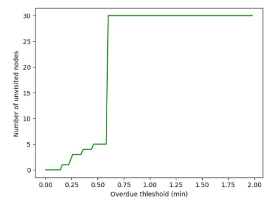 Variation of the number of unvisited nodes with respect to the overdue threshold.