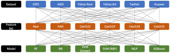 - Lavin, A.; Ahmad, S. Evaluating real-time anomaly detection algorithms–the Numenta anomaly benchmark. In Proceedings of the 2015 IEEE 14th International Conference on Machine Learning and Applications (ICMLA), Miami, FL, USA, 9–11 December 2015; pp. 38–44. [Google Scholar]