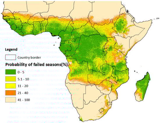 Seasonal failure probability-2014 [4] depicting the extent of climate change impact on Africa’s farmlands.