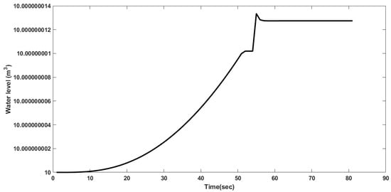 As seen in Figure 14, valve opening is a term used in irrigation to describe the degree to which a valve is open or closed. It is typically expressed as a percentage, with 0% indicating that the valve is completely closed and 100% indicating that the valve is completely open. The valve opening determines the amount of water that flows through the valve and into the irrigation system. By adjusting the valve opening, the controller can control the amount of water that is delivered to their crops. For this case, its opening slowly increases, because the level of the water discharge flow rate is directly proportional to the product area and the drop in pressure. The water level has a minimum of 10 m3, meaning that when the valve is opened, the water level will likewise gradually rise from 10 m3.