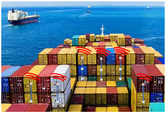 Some attempts to address this challenge are present in the literature. For example, in 2010, a hybrid system composed of two kinds of tracking devices was proposed [4]. The first kind is a “full-function” device equipped with a GPS receiver, transceivers to access Wi-Fi and ZigBee networks, and an RFID tag. These full-function devices require an infrastructure-based Wi-Fi network to be present on the vessel and in the yard. The second kind corresponds to “dummy” devices, which are only equipped with low-cost ZigBee transceivers. “Dummy” devices can only be tracked with the assistance of “full-function” devices. The limitations of this solution mainly lie in the necessity to connect the “full-function” devices to a Wi-Fi network, which cannot be guaranteed in all ports worldwide. Additionally, it is not realistically feasible to equip containers with two different types of trackers, ‘full-function’ on some and ‘dummy’ on others, as containers will have different destinations during their journeys. It will be easy to find oneself in real loading situations without ‘full-function’ trackers because they are shipped somewhere else, hence lacking connectivity for the ‘dummy’ ones.