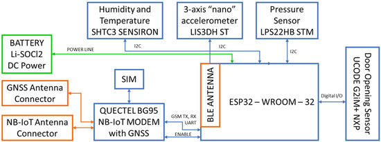 - Although, from a functional point of view, these three roles are distinct, from the HW point of view, the CTD has exactly the same elements, both when it performs the function of a mesh network node, when it performs the role of GW and when it just transmits sensing data via NB-IoT. It is, therefore, the same device that contains all the elements to perform all the functions, as described in the next subsection.