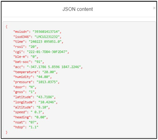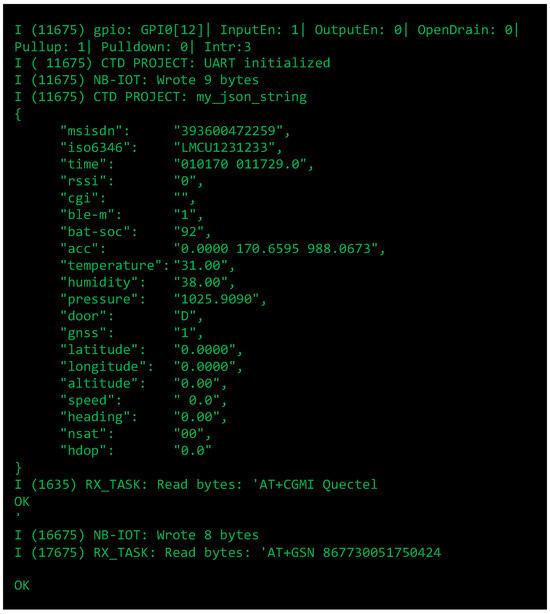 Regarding NB-IoT communication, using both Nordic and ESP32 + Quectel BG95 with SIM cards provided by TIM/Olivetti, it was possible to send position and sensor data to the cloud. It is important to emphasize that the CTD is SIM agnostic, as standard cellular technology is integrated into the system; notably, the authors also tested SIMs from other mobile virtual network operators (e.g., 1NCE—DE, Telenor—NO, Arkessa—UK) offering NB-IoT SIMs that work globally. The market is evolving rapidly in this regard; other companies are claiming global roaming agreements, including TIM, ORBCOMM, Things Mobile and even Satelliot.