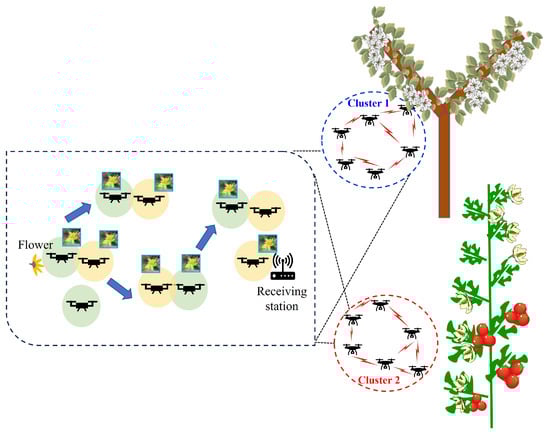 It is assumed that image data transferred using these protocols will be received at the receiving station, after which the data will be transferred to a cloud server in the wired network. For example, the cloud server uses AI classification technology by analyzing image data to classify flowers that can be pollinated [13]. In this case, duplicate images can be discarded. In addition, drones with pollination capabilities have been developed to fly to the coordinates of flowers to perform pollination work [42].