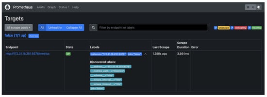 - The Falco Project. Falco. Available online: https://falco.org/docs/ (accessed on 21 January 2024).