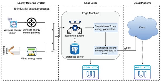 The three-phase industrial wired and wireless energy metering systems installed at the factory floor are integrated into the edge server by utilizing the local area network (LAN) based on network switches.