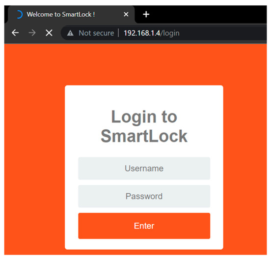 The Hypertext Transfer Protocol (HTTP) is handled by port 80. Therefore, a request can be submitted by typing the honeypot’s IP address ‘192.168.1.4’ in any web browser. The attacker is then routed to a webpage that is designed using JavaScript and CSS. As illustrated in Figure 2, two input text boxes represent the data needed to unlock the SmartLock system. This is normal behavior for the IoT system, giving the attackers a false sense of security and believing that they have infiltrated our IoT system. These inputs, along with other information about the attack and its location, were saved for the analysis.