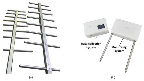 (a) Seven-element YAGI-UDA prototype implementation; (b) Monitoring and data collection systems implementation.