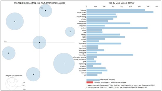 This section provides the answer to our second research question, RQ 4, regarding how AI/ML and IoT can address the challenges of digitized supply chains. It achieves this by discussing the results obtained after performing topic modeling on the dataset of 810 documents using the NMF algorithm. The topic modeling results also reveal overlaps in five topics with the clusters from the keyword co-occurrence and co-citation analysis. Consistent with our previous approach, we provide a detailed exploration of the novel topics, including cold-chain logistics and water distribution systems, and limit the discussion of repetitive clusters to a brief overview.