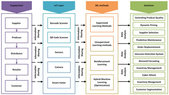 - Makkar, S.; Devi, G.N.R.; Solanki, V. Applications of Machine Learning Techniques in Supply Chain Optimization. In ICICCT 2019—System Reliability, Quality Control, Safety, Maintenance and Management; Springer: Singapore, 2020; pp. 861–869. [Google Scholar] [CrossRef]