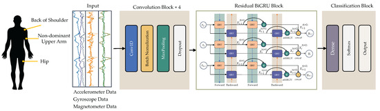 More notably, the advantages of our model become even more pronounced in the more complex 16-class classification task. The CNN-ResBiGRU achieved accuracies of 76.10%, 81.60%, and 91.20% for window sizes of 2 s, 5 s, and 10 s, respectively. In comparison, the baseline SVM model reached only 72%, 78%, and 84%. These results reflect performance gains of 4.10%, 3.60%, and 7.20%, thereby demonstrating the model’s robustness and scalability in addressing high-dimensional, multi-class activity recognition challenges.
