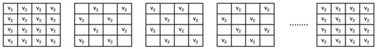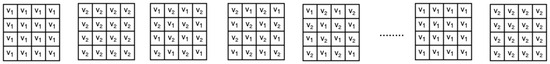 In the initial step, the first frame from and the first frame from are transmitted exactly as they are, with no modifications, as depicted in Figure 1 and Figure 2 using a grid representation. For the second frame, an alternating pattern is applied. Odd rows use pixels from for even columns and pixels from for odd columns. For even rows, even columns take pixels from , while odd columns use pixels from . This pattern is applied consistently throughout the process, alternating the pixel arrangement for each frame. For the third frame, the roles reverse: Odd rows now use pixels from for even columns and for odd columns, while even rows take pixels from for even columns and for odd columns. This alternating pattern continues for all subsequent frames in the combined video, as shown in Figure 3. Once all frames have been combined, any remaining frames from are appended in full, followed by the extra frames from . This approach ensures that the original structure of both videos is maintained at the expense of some information loss due to the skipping of alternate rows from each frame as mentioned in the encoding Algorithm 1. The missing pixels are recreated through interpolation by the decoding Algorithm 2 described in Section 5.4.