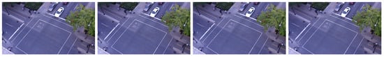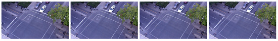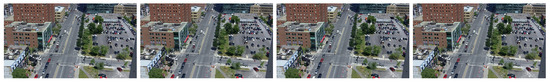 - Outdoor Video 3 (): The third outdoor video dataset that we have utilized comes from the Sherbrooke video in Urbantracker and captures the Sherbrooke/Amherst intersection in Montréal. The CCTV camera in this video placed a couple of meters above the ground and captures cars and pedestrians, with each scene contains about seven objects simultaneously. The video resolution is . The dataset was created using 1001 frames and encoded using the codec at 30 fps with a variable bit rate.