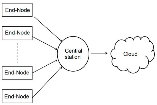 Our No-Code educational platform approach utilizes open hardware and software, enabling students to create a wireless sensor network easily. The architecture of this network, shown in Figure 1, follows a typical IoT structure. Specifically, multiple end-nodes, equipped with sensors of agricultural interest, transmit their data to a central station. The hardware part of the central station can be any computer that supports Bluetooth connectivity and has internet access. It must also be capable of running the necessary code to collect, store, and forward data to IoT cloud platforms. For example, the central station’s hardware could be a Raspberry Pi, a laptop, or a desktop computer equipped with a Bluetooth dongle.