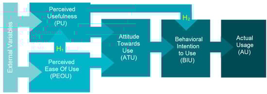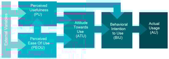 - Davis, F.D. Perceived usefulness, perceived ease of use, and user acceptance of information technology. MIS Q. 1989, 13, 319–340. [Google Scholar] [CrossRef]