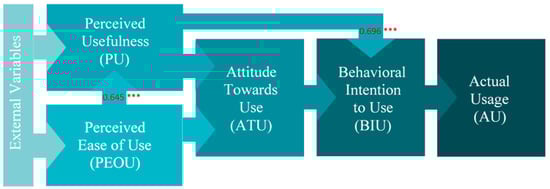 Results of the TAM model for measuring the no-code platform’s intention for use. Note: *** p < 0.001.