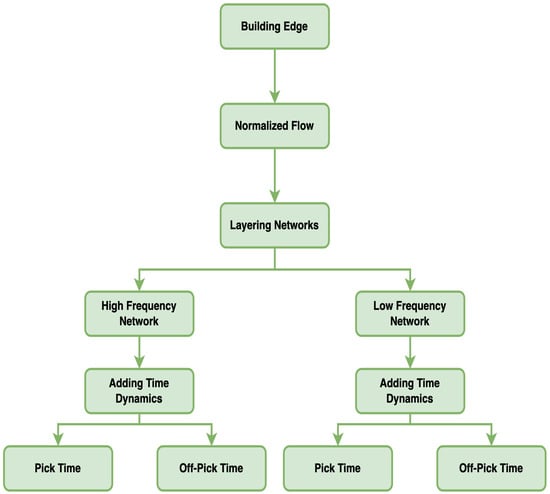 Step 5—Temporal Dynamics: To account for passenger flow during different time periods, such as peak morning and evening hours or off-peak times, multiple network layers are created to reflect the changing travel demand over time. This temporal dimension allows the network to not only illustrate spatial passenger flow patterns but also capture the effects of temporal variations on these patterns.