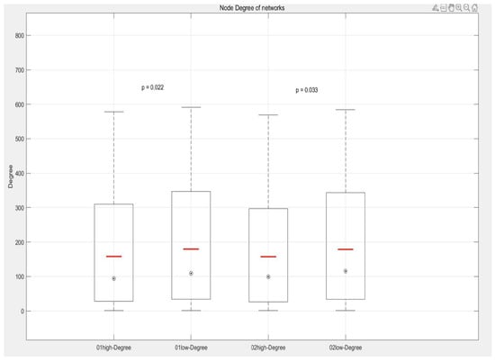 Low-frequency networks exhibited different robustness characteristics. Interestingly, the clustering coefficient increased slightly after the removal of central nodes, such as in the 01low network, where it rose from 0.000870484 to 0.000941457. This may reflect better connectivity in other parts of the network or the presence of more alternative paths in low-frequency networks. Nonetheless, similar to high-frequency networks, the average path length in low-frequency networks increased, and network efficiency decreased, emphasizing that central nodes are also critical for the performance of low-frequency networks.