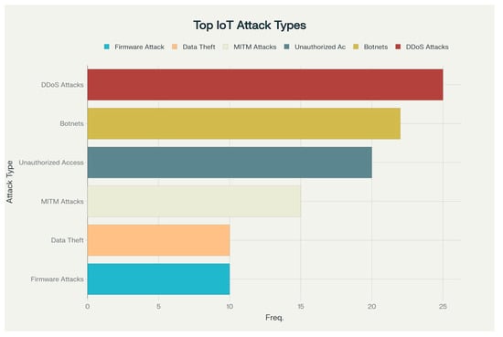 Percentage of the most common types of attacks on IoT and AIoT devices.