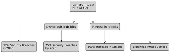 IoT has focused on the connecting of devices across extensive networks to enable data interchange, management, and aggregation. This fundamental principle has progressed with the emergence of AIoT, which augments IoT by integrating intelligent functionalities into devices. This connection allows devices to independently assess data, make intelligent judgments, and perform actions in real time, thus revolutionizing the operational landscape across multiple industries, including industry, healthcare, smart cities, and cybersecurity [19,20].