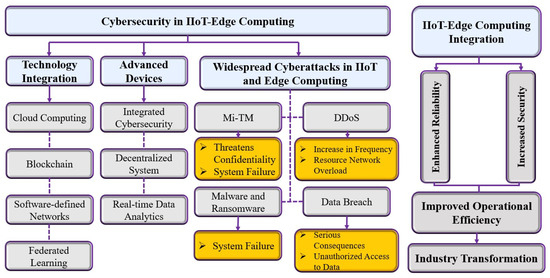As was mentioned in Section 3 of this paper, IoT architecture typically do not come with a dedicated layer explicitly called “Processing Layer”. Instead, processing functionality is distributed across multiple layers (Edge, Fog, and/or Cloud) in the architecture. Such processes are subject to multiple vulnerabilities that might affect the security and effectiveness of any AIoT-based systems. These attacks exploit vulnerabilities in the network, devices, and data processing systems, requiring thorough detection and mitigation protocols. Figure 6 illustrates cybersecurity threats in the Edge computing layer and how the Edge computing layer helps in mitigating these threats.