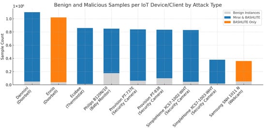 - Meidan, Y.; Bohadana, M.; Mathov, Y.; Mirsky, Y.; Shabtai, A.; Breitenbacher, D.; Elovici, Y. N-BaIoT—Network-Based Detection of IoT Botnet Attacks Using Deep Autoencoders. IEEE Pervasive Comput. 2018, 17, 12–22. [Google Scholar] [CrossRef]