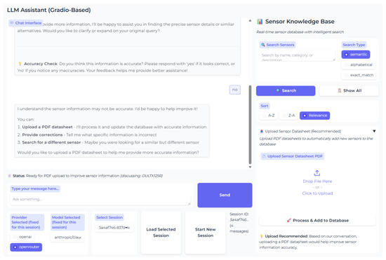 Evaluations of the general chat and guidance functions revealed that the correct embedding model and the search method for vector database retrieval are crucial for accurate responses. Models struggled to answer queries when source data used abbreviations, such as “220 to GND” instead of “220 Ohm to Ground” due to the RAG retrieval focusing on word forms rather than meanings, highlighting a limitation of the current RAG system. Chunking PDF datasheet content proved efficient, enabling models to only send relevant information rather than full context. With proper chunking and data quality, we demonstrate that smaller models like LLaMA 3.3 and Mistral Small, which faced challenges in PDF extractions, successfully answered user queries about unlearned sensors.