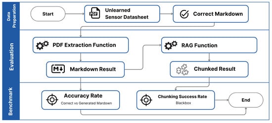 PDF files are often unstructured, which complicates data extraction [17], while the RAG function works best with structured data [51]. Sensor data sheets may contain single-column, double-column, or mixed-column text, as well as multiple tables and images like diagrams or graphs. To address this, we developed a PDF extraction process that combines several Python libraries, including PyMuPDF and PyPDF2, to extract raw text from the data sheets. Figure 7 below explains how our PDF extraction process works.