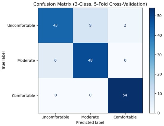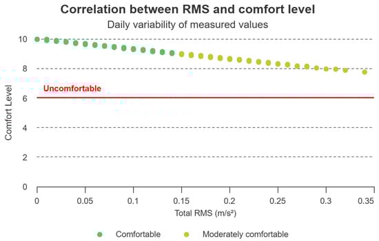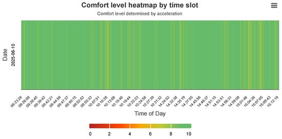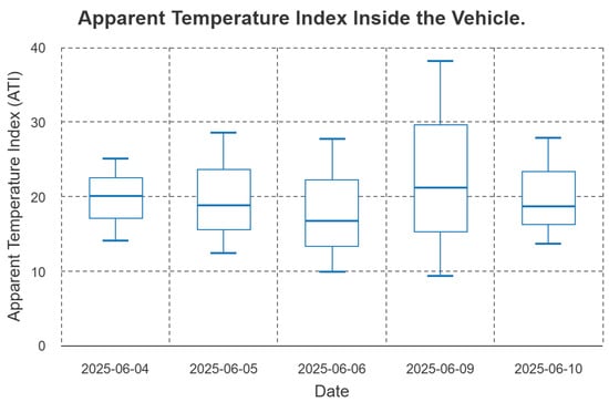 For this part of the analysis, only temperature measurements, collected at 10 s intervals, were used. Comfort levels were designed to represent subjective thermal perception in short-haul transport vehicles, based on empirical observations and previous [,,].