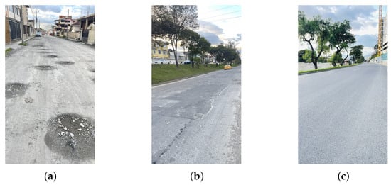 The tests were conducted in the city of Loja, located in the southern region of Ecuador, South America. Loja is a mid-sized city with an estimated population of 200,000 inhabitants [], known for its relatively well-developed infrastructure and adherence to urban planning standards. However, due to recent climatic variability, certain suburban areas exhibited deteriorated pavement conditions, characterized by increased surface roughness, providing an ideal scenario for test drives under varied conditions.