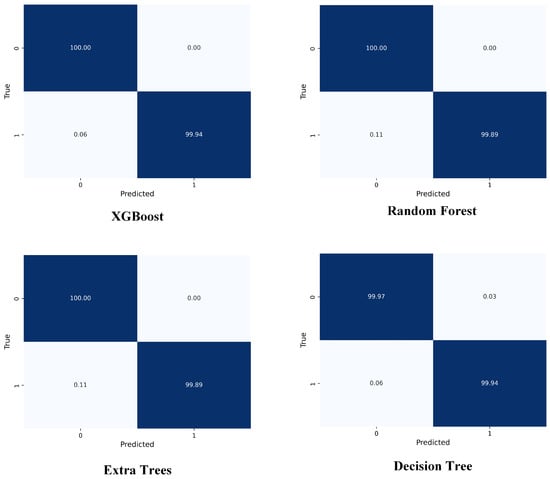 where , , , and denote true positives, true negatives, false positives, and false negatives, respectively. The model’s performance is additionally evaluated by classification reports and visualization techniques, notably heatmaps.